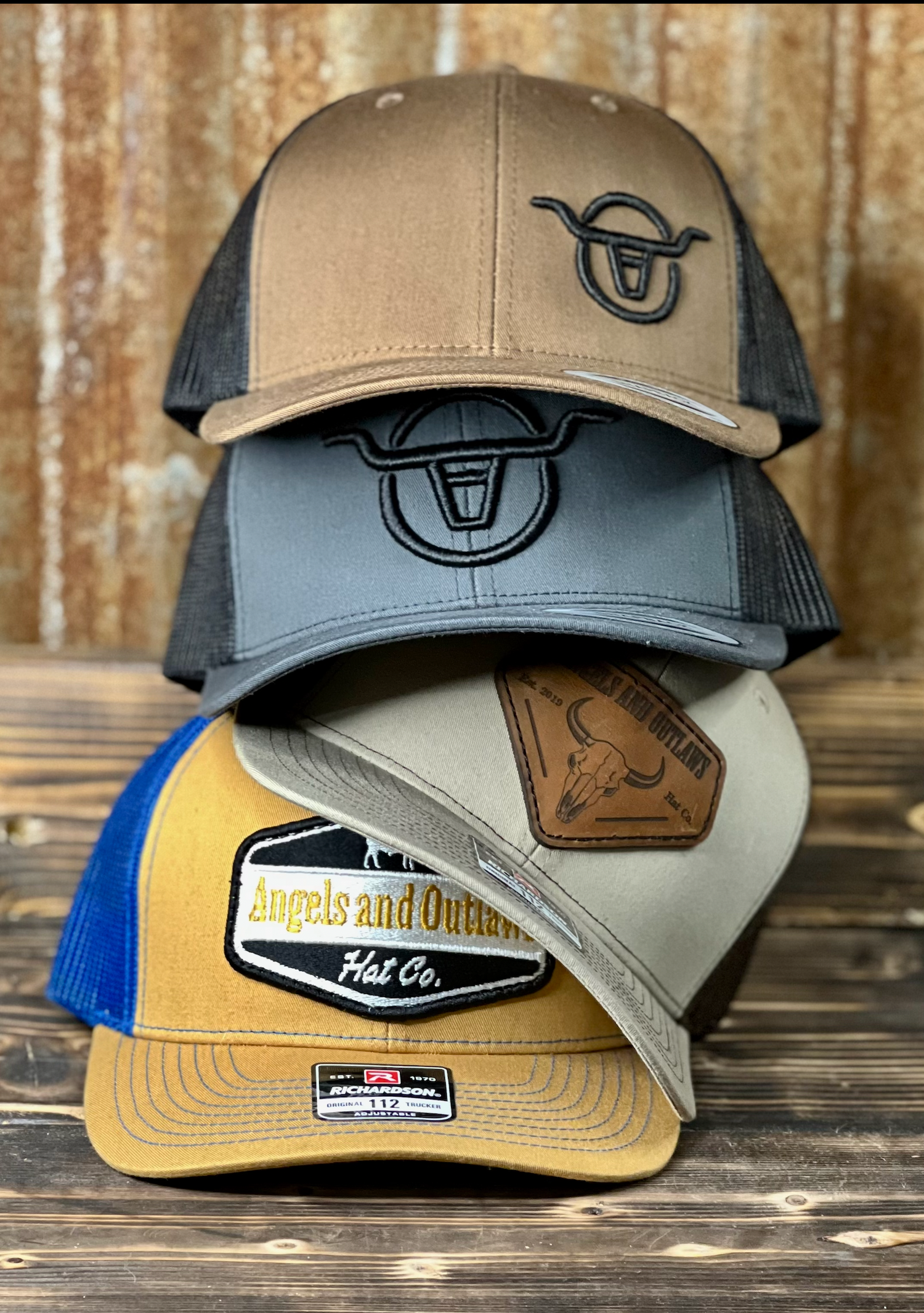 Angels and Outlaws Hat Club uses various styles and brands of hats. Our most common are Richardson and Yupoong trucker style hats. The style of hat may vary.